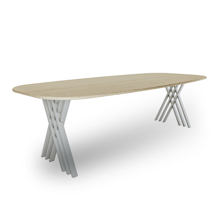 Het onderstel van de Summit is een gedurfde expressie van kracht en verfijning. Met zijn kenmerkende gekruiste balken creëert dit sculpturale onderstel een indrukwekkend