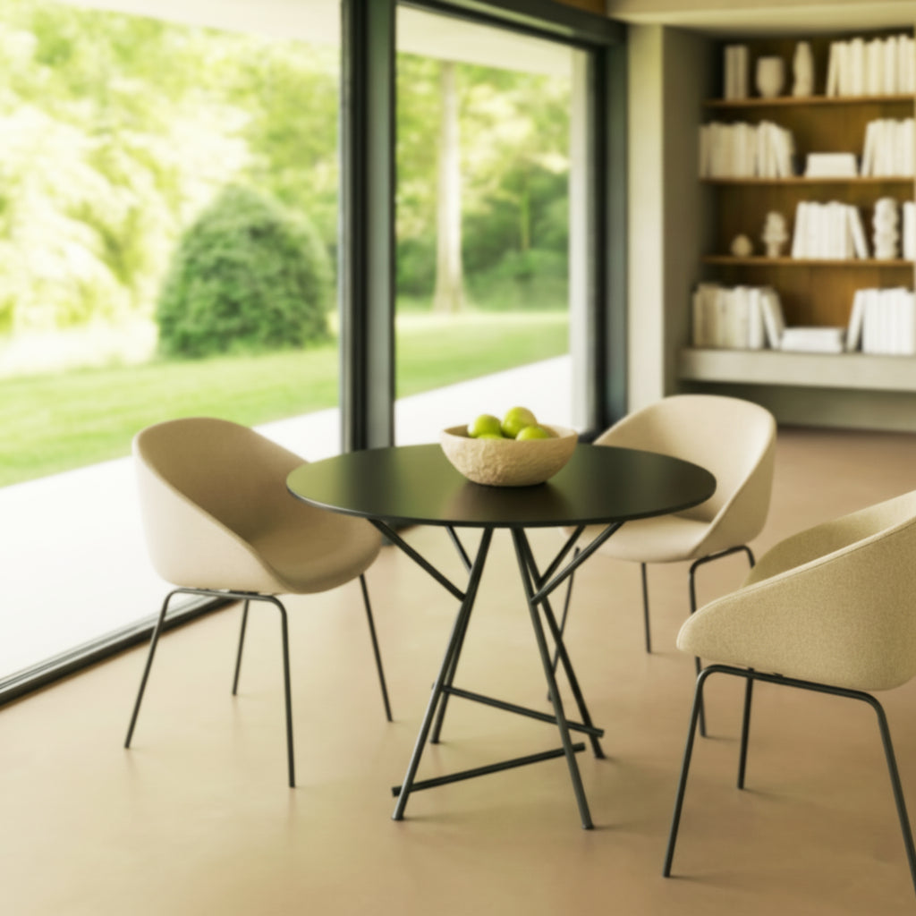 De Art herdefinieert design met een gedurfde uitstraling. Met een enkele, sculpturale tafelonderstel, trekt deze tafel direct de aandacht, terwijl hij